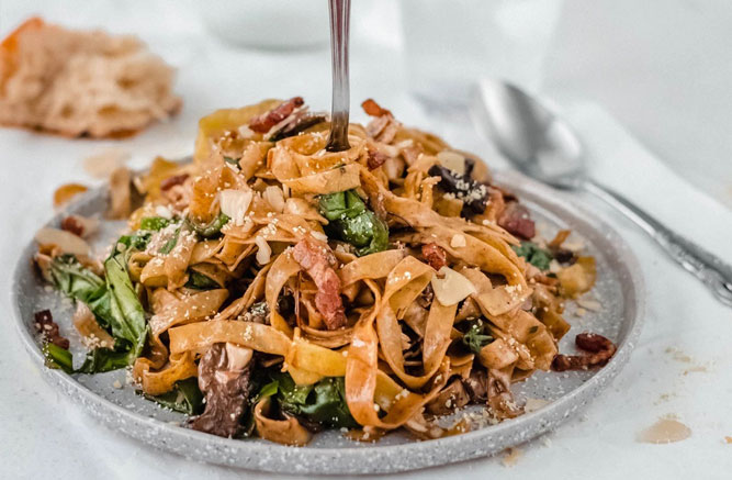 Pasta con Champiñones, Panceta y Mantequilla Dorada