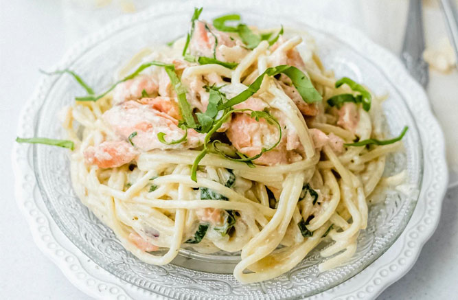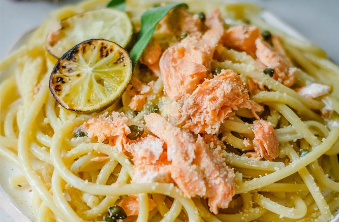 Pasta con Trucha en Salsa de Queso Azul