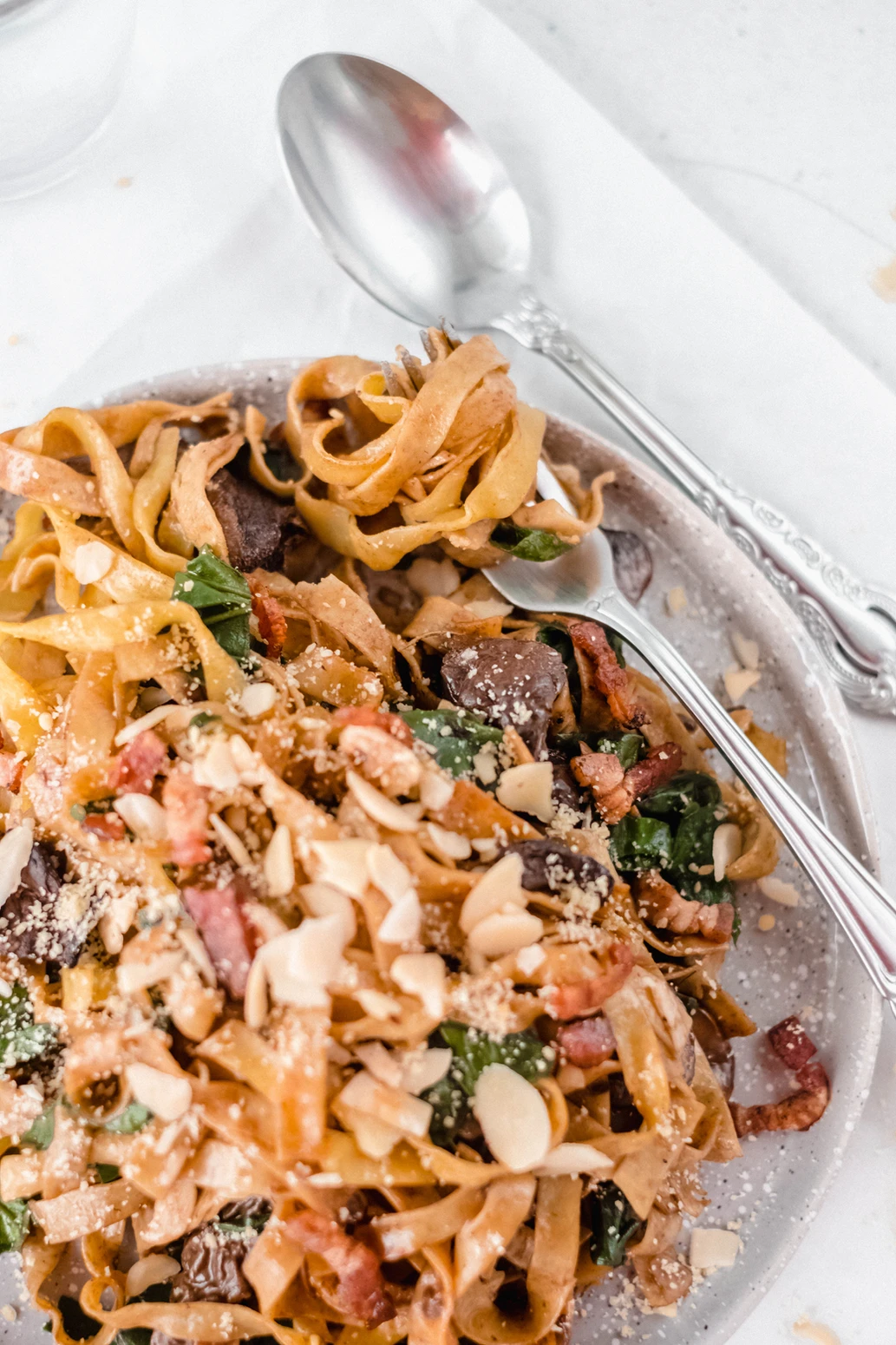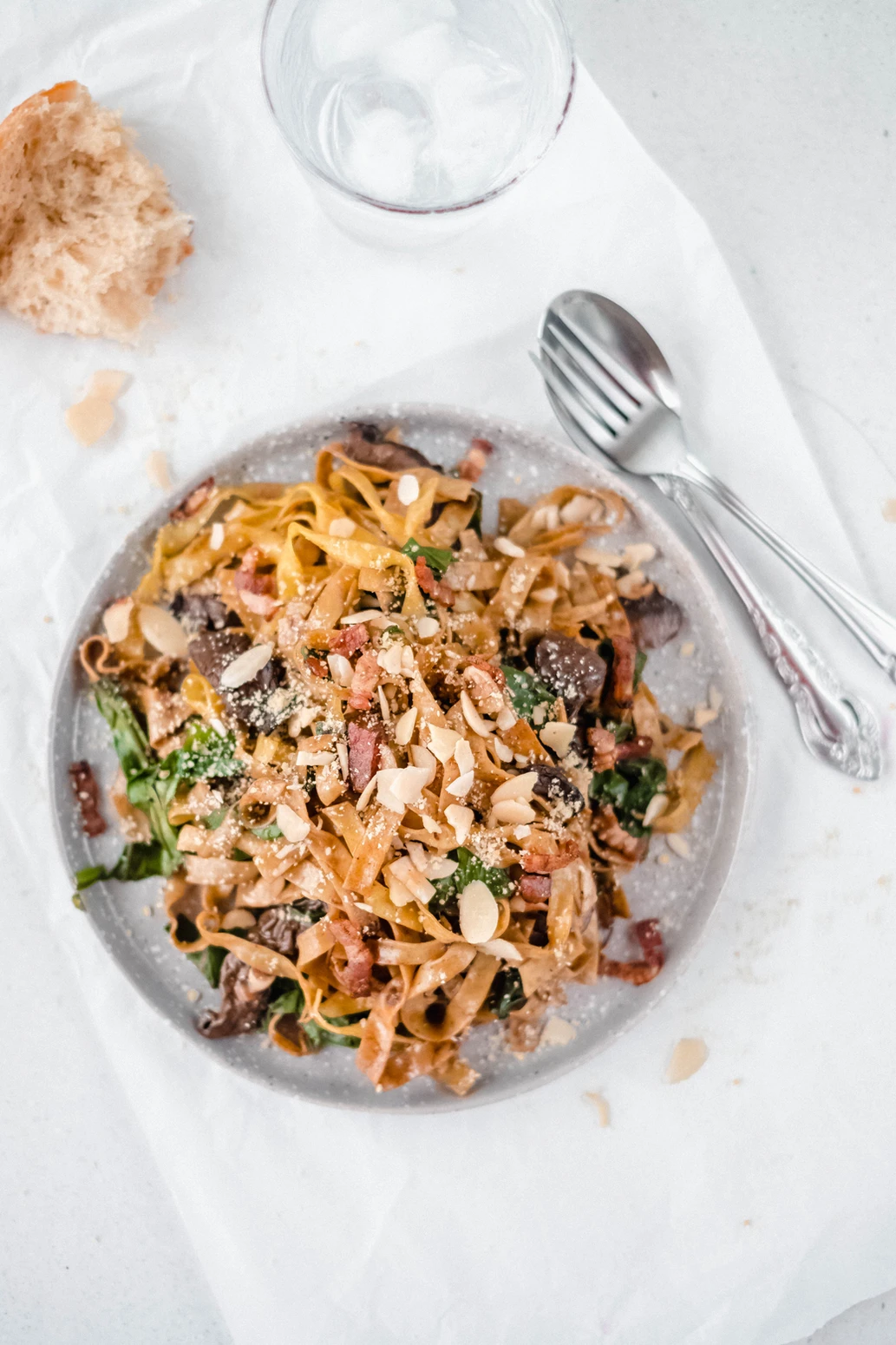 Pasta con Champiñones, Panceta & Mantequilla Dorada