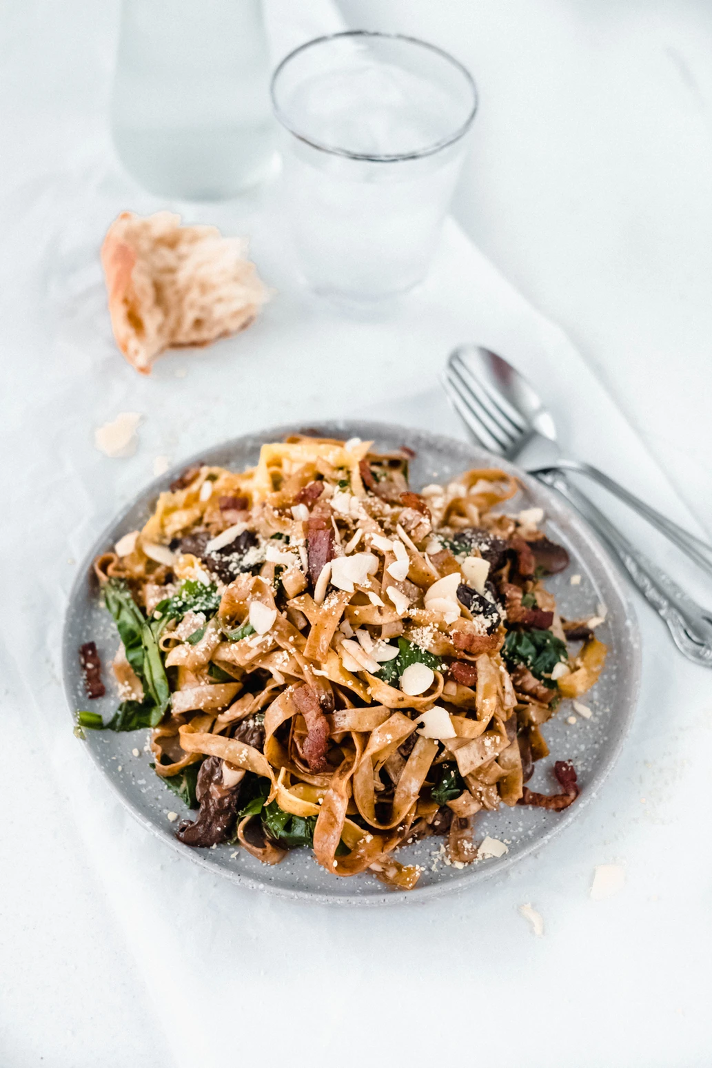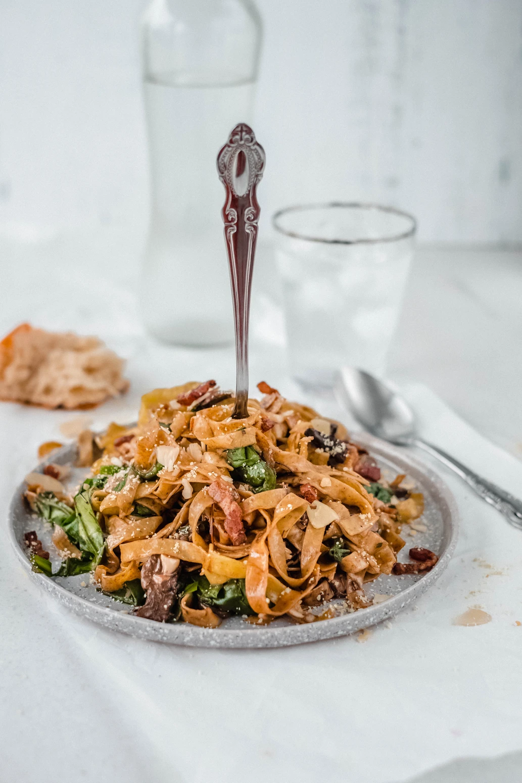 Pasta con Champiñones, Panceta y Mantequilla Dorada